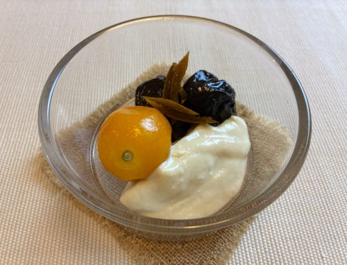 ・金柑とプルーン煮、トーフクリーム添え