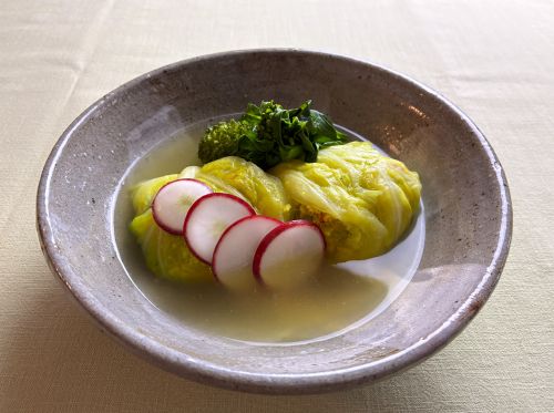 ・豆腐のロールキャベツ、スープ仕立て